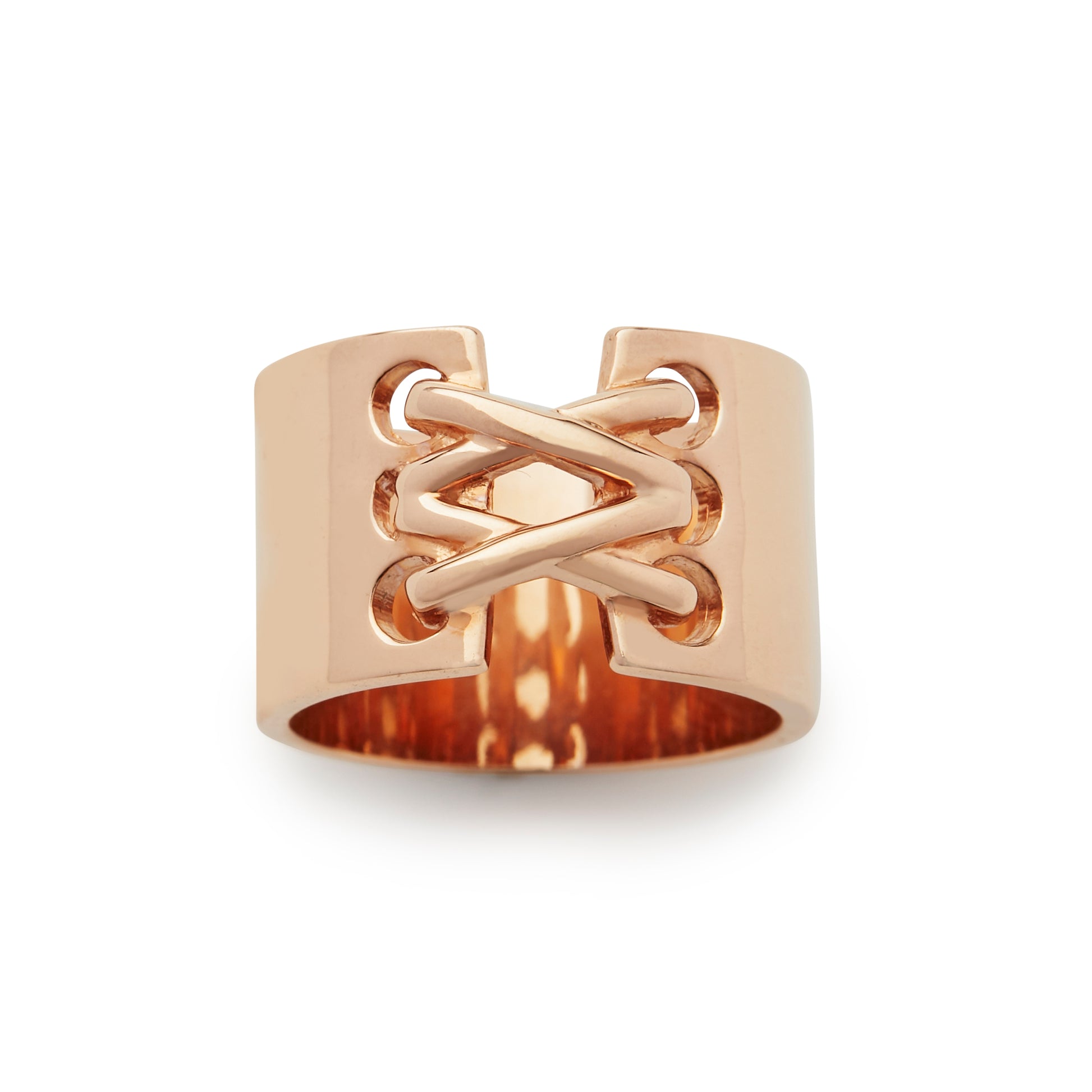 A little corsetry without the cracked ribs, our corset ring brings some haute couture to your hands.