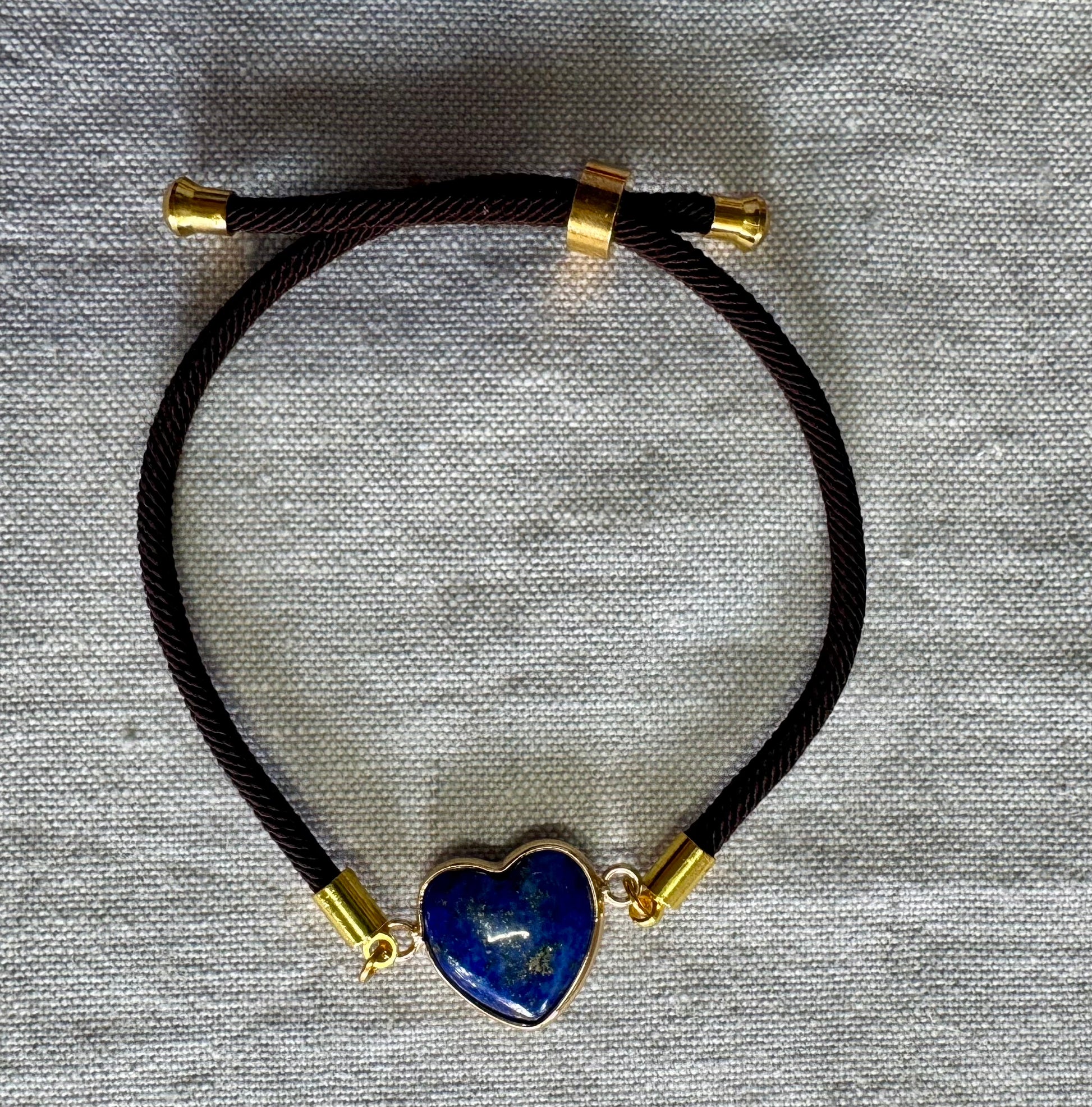 We've sourced stones of Jasper, Tiger Eye or Lapis, heart shaped and threaded on a gorgeous high quality cord. This bracelet is adjustable to suit your desired placement and length.